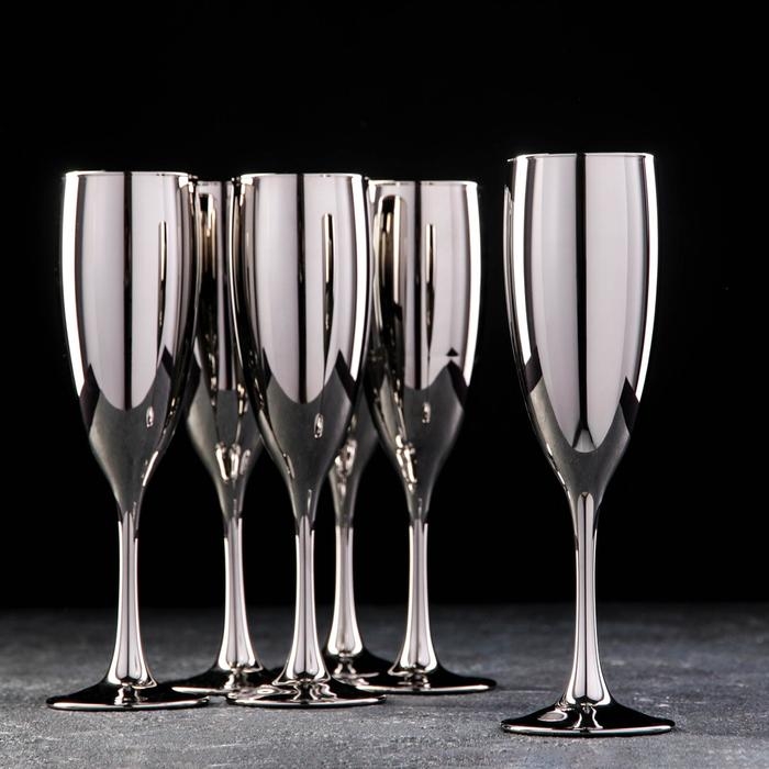 Набор бокалов для шампанского «Серебро», 170 мл, 6 шт, цвет серебряный