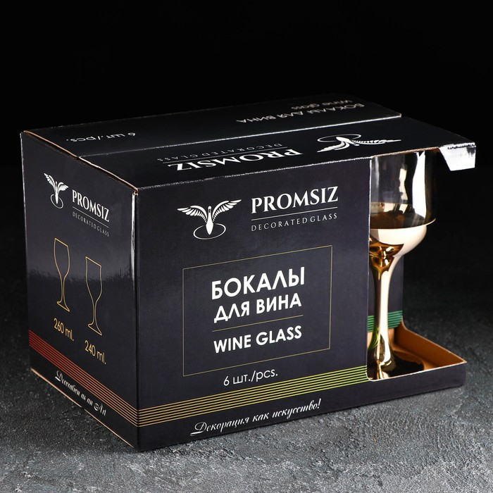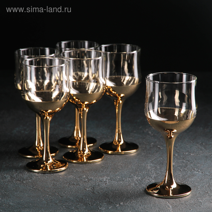 Набор бокалов для вина «Поло», 250 мл, 6 шт, цвет золотой