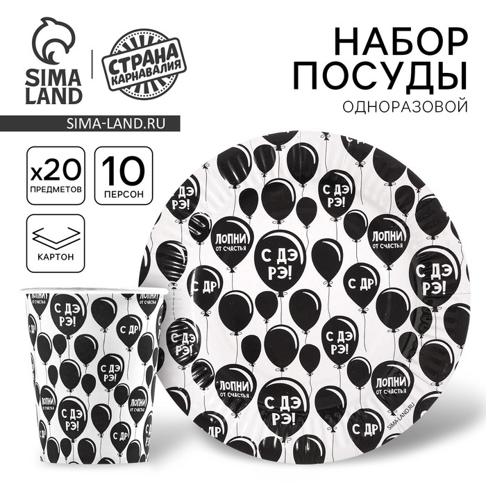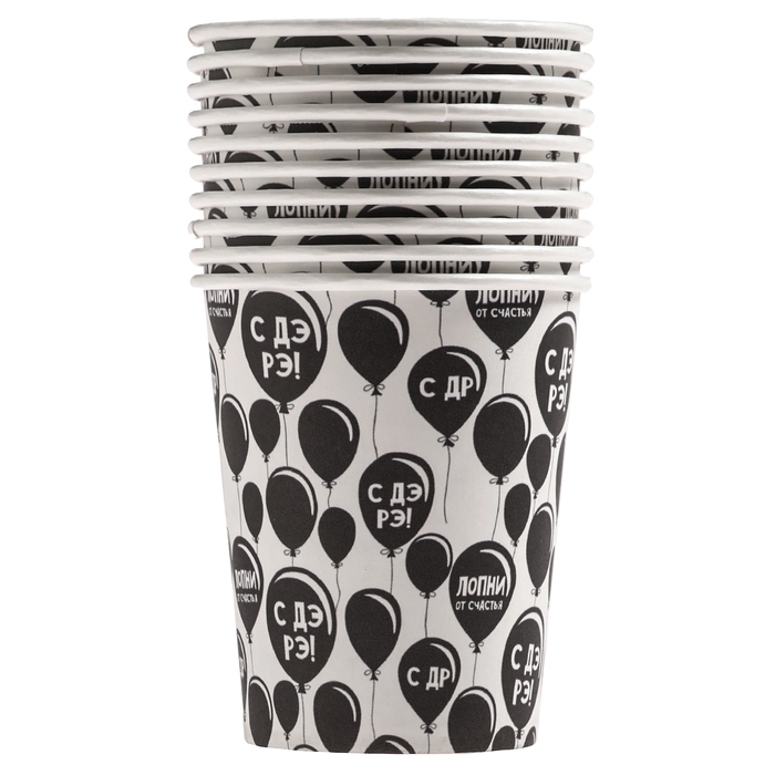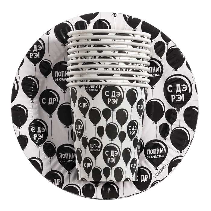 Набор бумажной посуды "С ДР", 10 стаканов, 10 тарелок