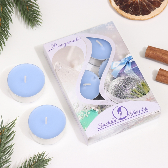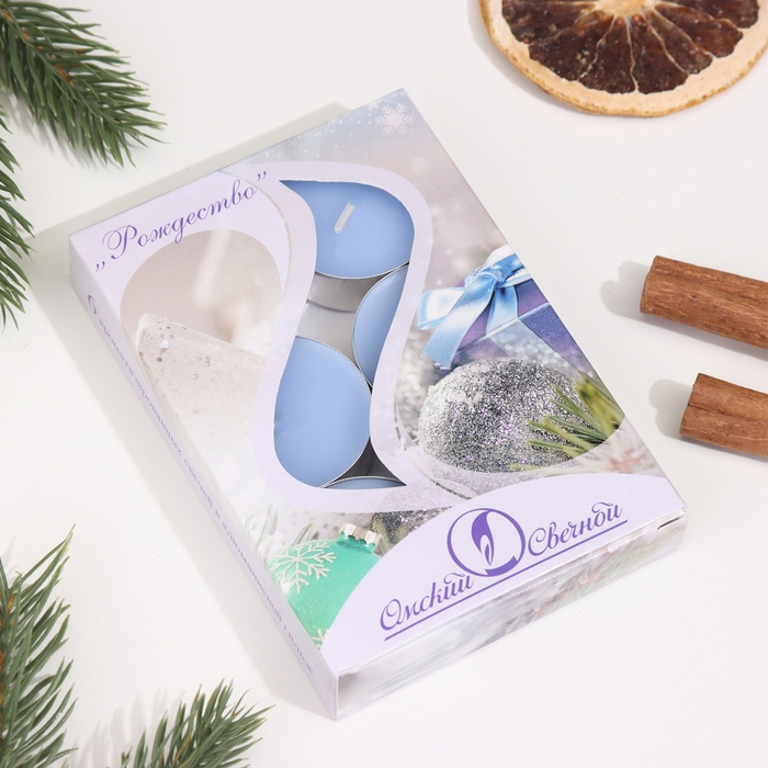 Набор чайных свечей ароматических "Рождество", 3,8х1,6 см, 3,5 ч, 12 г, 6 штук