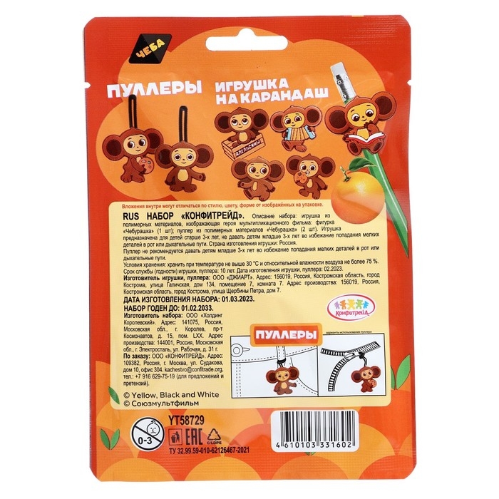 Набор «Чебурашка»: 2 пуллера и игрушка на карандаш, в флоупаке