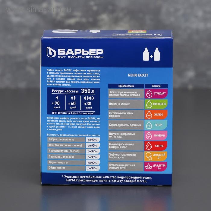 Ресурс — 350 литров. Совместима со всеми кувшинами «Барьер».