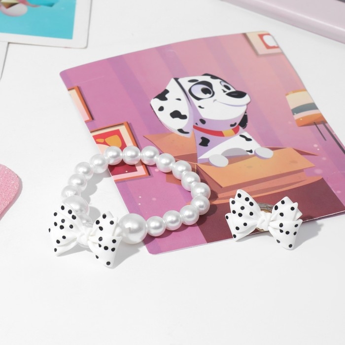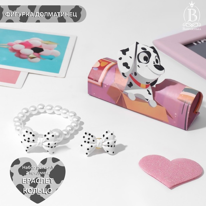 Набор детский «Выбражулька» 2 предмета: браслет, кольцо, фигурка далматинец, цвет белый