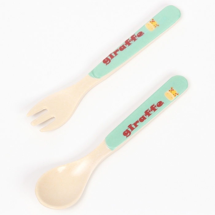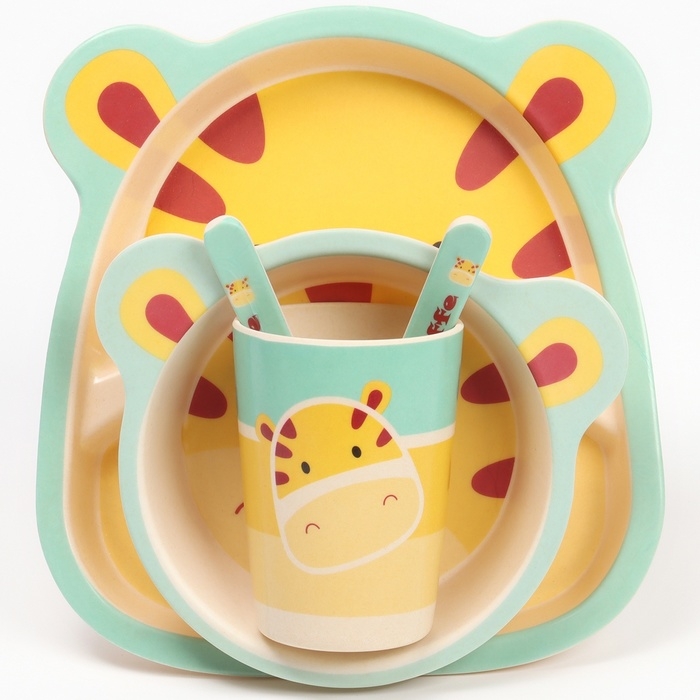 Набор детской посуды из бамбука «Жирафик», 5 предметов: тарелка, миска, стакан, столовые приборы