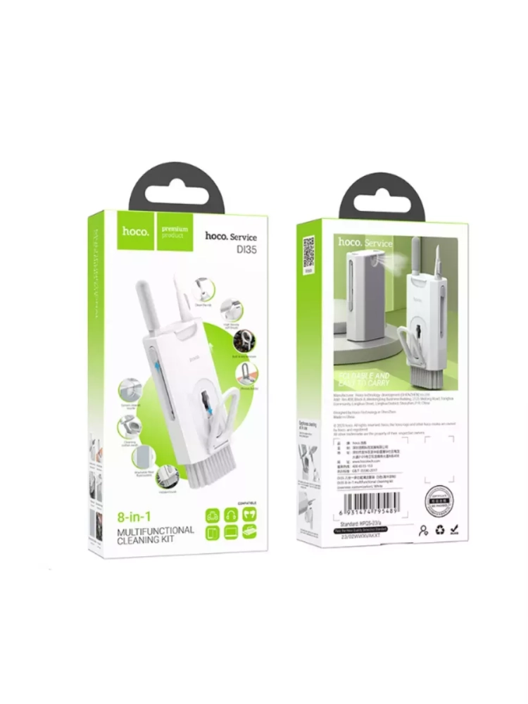 С комплектом Hoco DI35 ваши устройства приобретут новый блеск! Этот набор 8 в 1 подойдет для очистки всех типов гаджетов, включая клавиатуру, телефон, планшет, наушники и многие другие устройства.