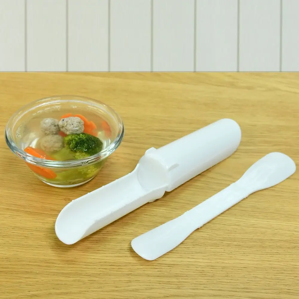 Изготовлено: пластмасса (полипропилен). Размеры: ложка-24,5х4,5х4см, лопатка-22х3,5см.