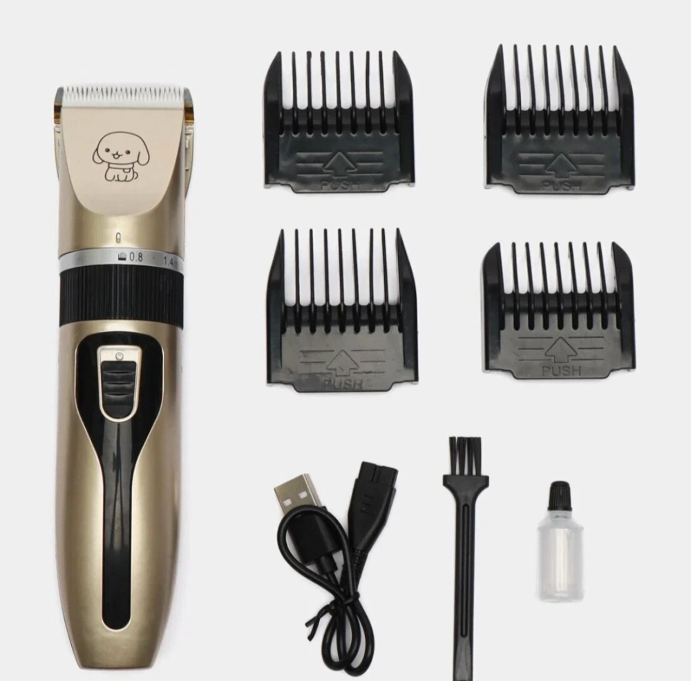 Машинка для стрижки домашних животных с usb зарядкой. Электрическая машинка для стрижки домашних животных очень хорошо подходит для собак, для кошек, для кроликов и мелких зверюшек. Уровень шума очень низкий благодаря прецизионным мотором, низкая вибрация обеспечивает бесшумную работу. Стрижка собак и кошек пройдет без стресса для животных. Машинка для стрижки животных беспроводная и перезаряжаемая. Заряжается от сети в течение 4-5 часов. Время работы около 2-3 часов. Керамическая головка имеет хорошую износостойкость. Благодаря R-type obtuse контакт с кожей под разными углами может защитит кожу от травм. В комплектацию входит машинка для стрижки, кабель, чистящая точка, 4 насадки для гребня 3-6-9-12 мм, ножницы для стрижки волос, железная расческа для волос, точилка для ногтей, кусачка для ногтей, флакон жидкости для машинки.
