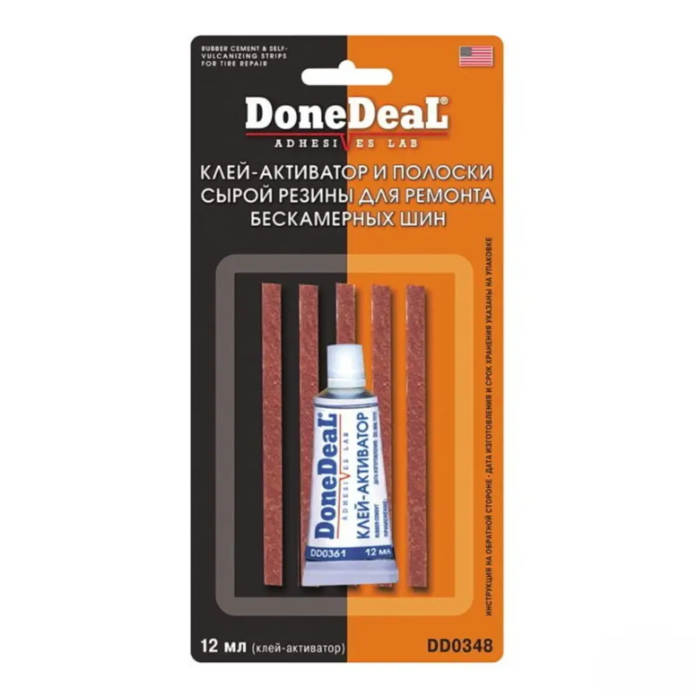 Клей - активатор и полоски сырой резины для ремонта бескамерных шин Набор для ремонта шин