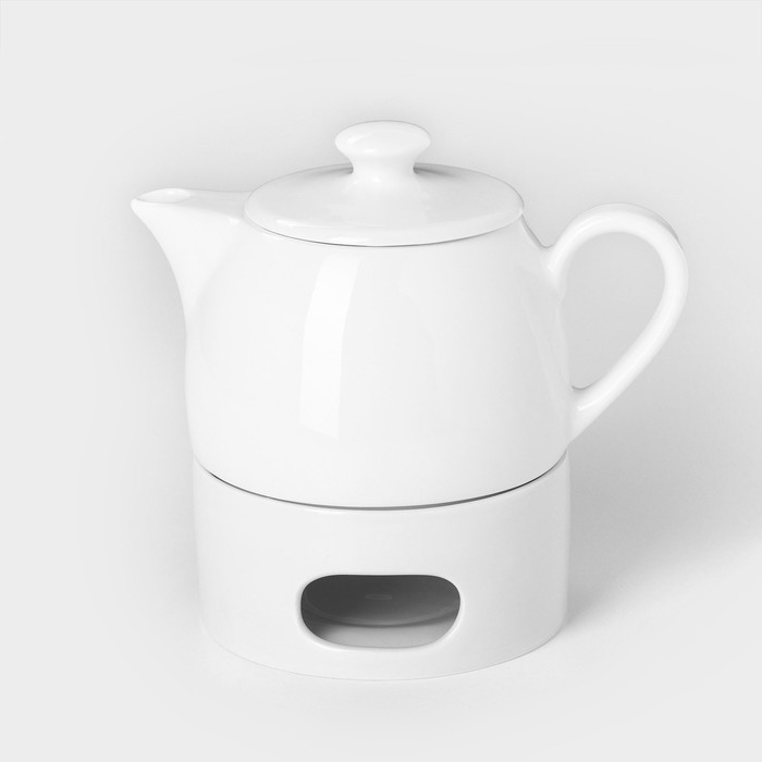 Набор для чая фарфоровый «Практик», 2 предмета: чайник 400 мл с подогревом