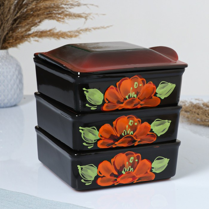 Набор для холодца "Квадро" 3х0,9л, мак на черном