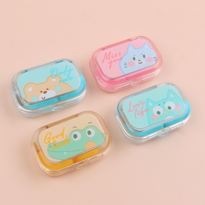 Набор для контактных линз, в футляре с зеркалом, 4 предмета, цвет МИКС