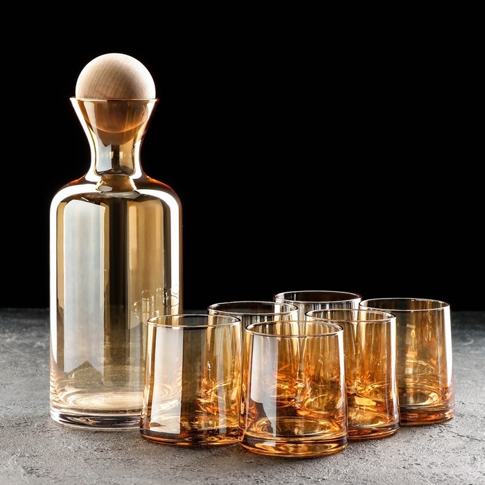 Набор для напитков из стекла «Эко», 7 предметов: графин 1 л, 10×24,5, 6 стаканов 250 мл, цвет золотой