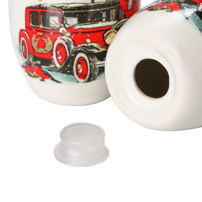 Набор для специй изготовлен из качественного доломита и украшен красивым новогодним рисунком. Подойдет для соли,перца и других сухих специй. Несмотря на свой праздничный внешний вид, набор рассчитан на ежедневное использование.