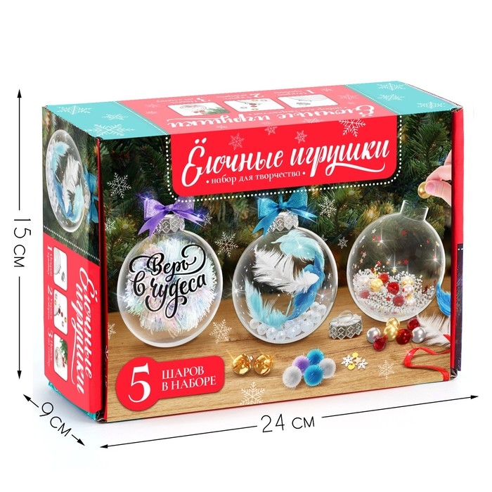 Набор для творчества «Ёлочные игрушки. Шары с наполнением», 5 шт.