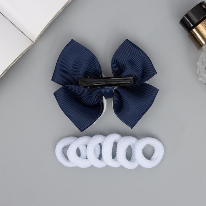 Набор для волос "Сьюзи" (зажим 8 см, 6 резинок 2,5 см) классика, сине-белый
