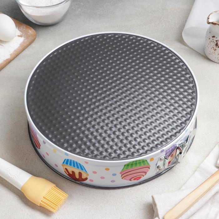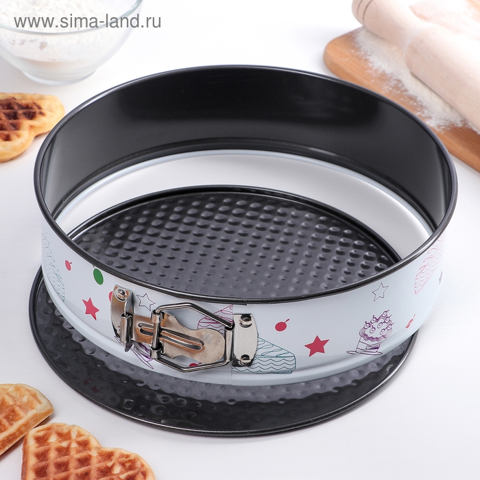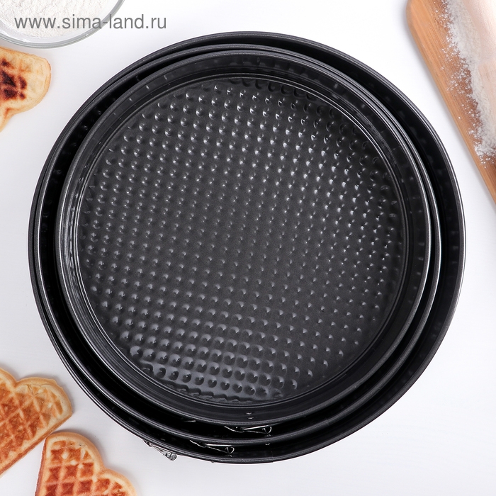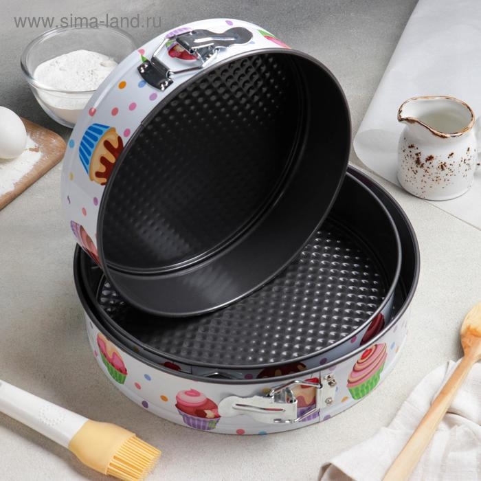 Набор форм для выпечки Доляна «Милый кондитер», 3 предмета: d=28/26/24×7 см, съёмное дно, антипригарное покрытие, цвет белый
