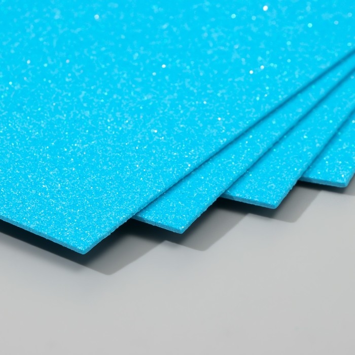 Набор глиттерного фоамирана (5 листов) 2 мм 20х30 см, ярко голубой