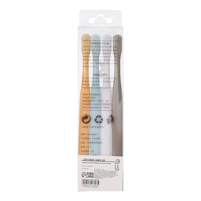 В набор входят четыре мягкие щётки с мягкими щетинками, которые легко проникают в труднодоступные места и удаляют зубной налёт, не оставляя царапин на эмали. Эргономичная ручка обеспечивает удобство использования и предотвращает усталость рук во время чистки зубов.