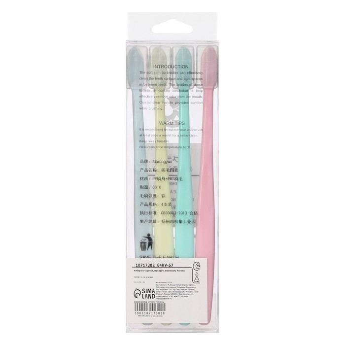 В набор входят четыре мягкие щётки с мягкими щетинками, которые легко проникают в труднодоступные места и удаляют зубной налёт, не оставляя царапин на эмали. Эргономичная ручка обеспечивает удобство использования и предотвращает усталость рук во время чистки зубов.