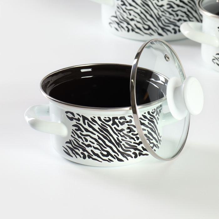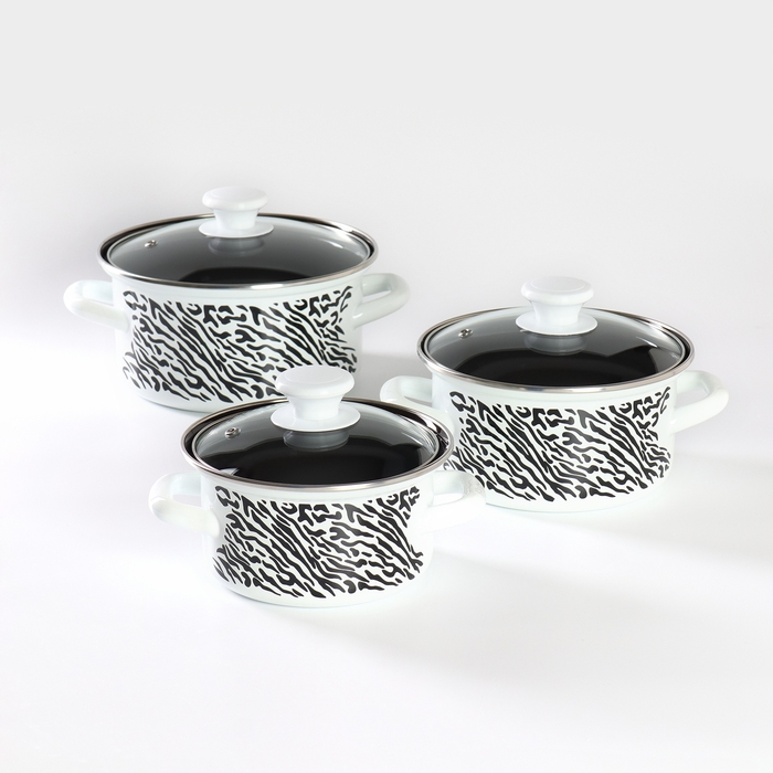 Набор кастрюль «Зебра», 3 предмета: 1 л, 1,5 л, 2,3 л, стеклянные крышки