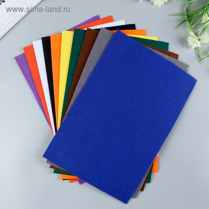 Набор клеевого фетра (мягкий) 1,8 мм 20х30 см 10 листов цв. ассорти
