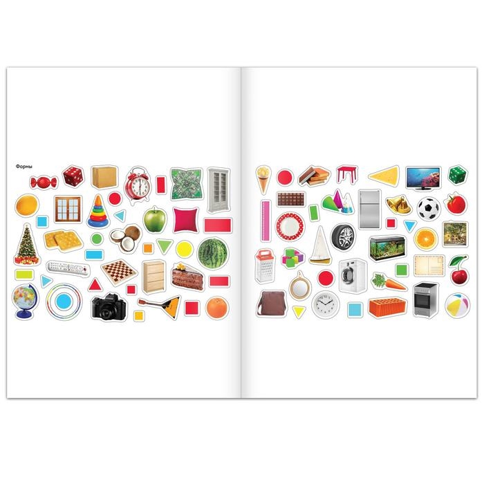В каждом альбоме представлено 250 наклеек с красочными изображениями игрушек, растений, фруктов, одежды и других важных предметов окружающего мира. Яркие картинки положительно влияют на визуальное восприятие малыша, память и воображение.