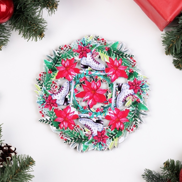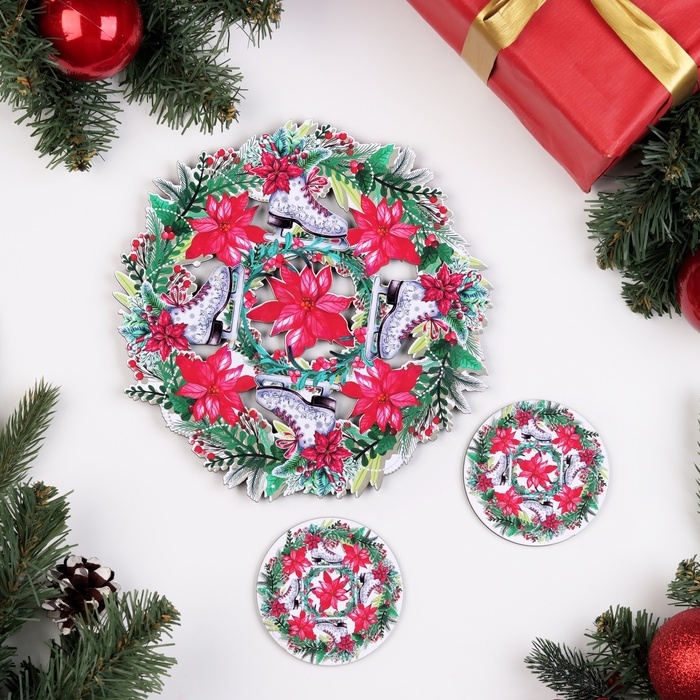 Набор "Коньки", подставка под горячее и 2 подстаканника, D-20,5 см