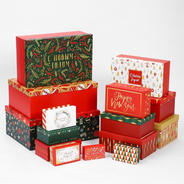 Набор коробок подарочных 15 в 1 «С Новым годом», 12 х 7 х 4 см - 46,6 х 35,2 х 17.5 см, Новый год