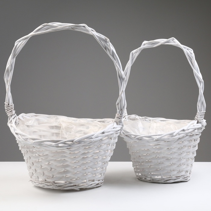 Набор корзин, 37x30х17/20/44 см, 32x28х17/20/40 см, 2 шт, белые, ива