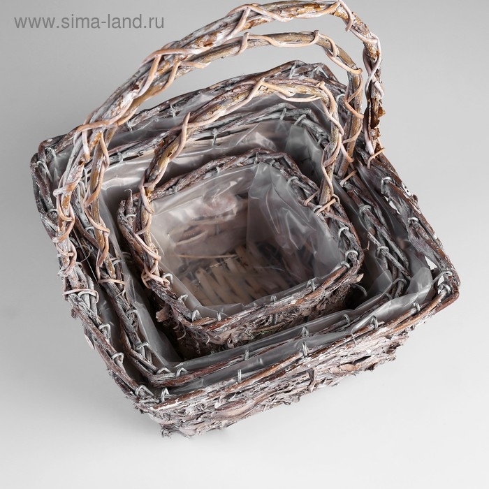Набор корзин «Корзиночка», 3 шт: 25×25×14/32 см, 20×20×14/29 см, 15×15×12/25 см
