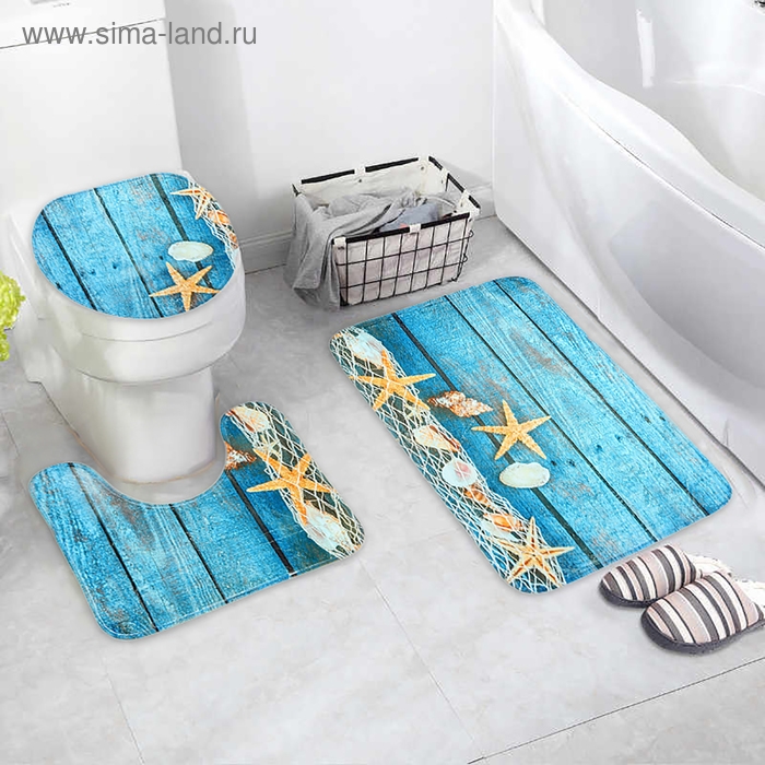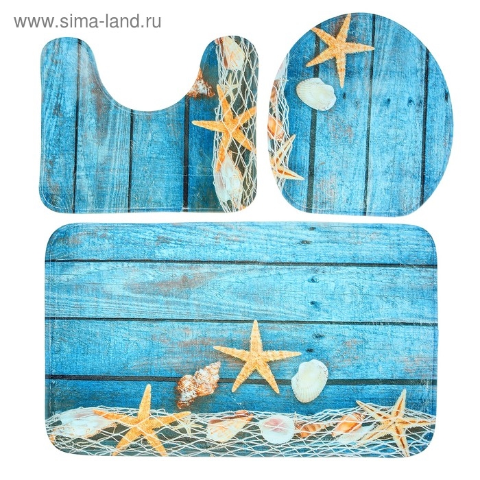 Набор ковриков для ванной и туалета Доляна «Морские звёзды», 3 шт: 35×39, 40×50, 45×75 см