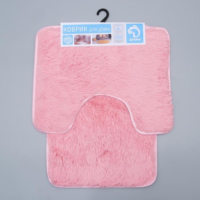 Набор ковриков для ванной и туалета Доляна «Пушистик», 2 шт, 38×40, 40×60 см, цвет розовый
