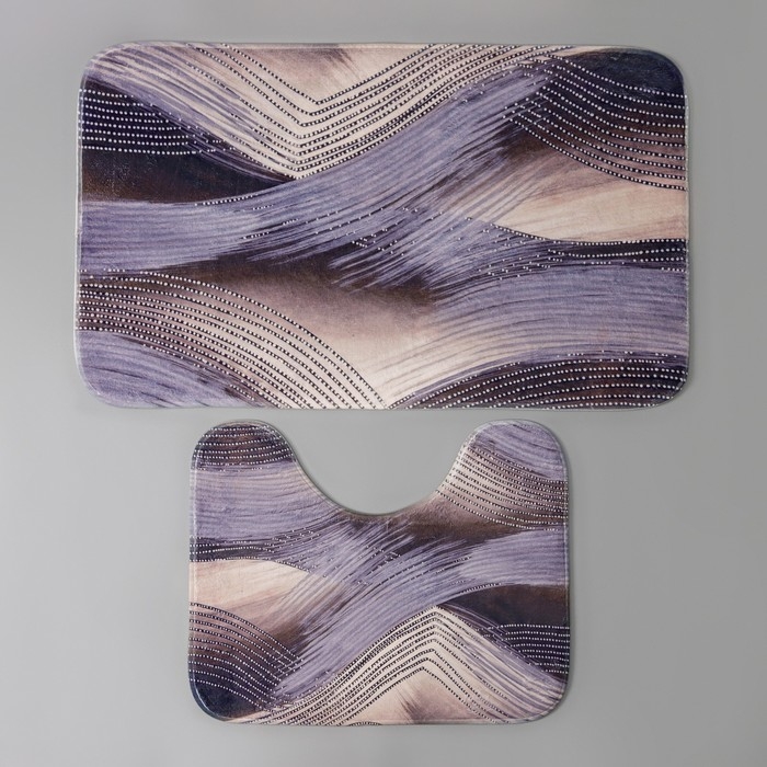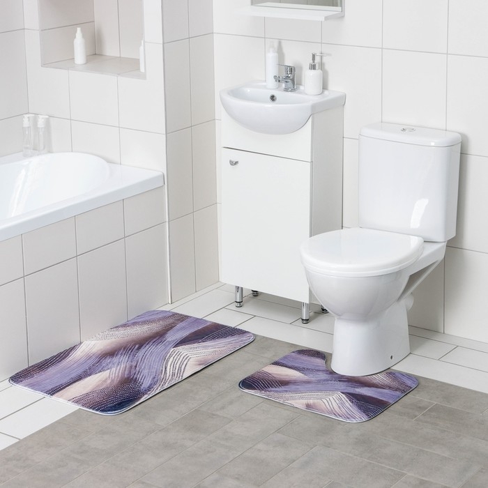 Коврики для ванной и туалета Доляна «Мрамор», 2 шт: 79×50 см, 50×39 см, цвет серый