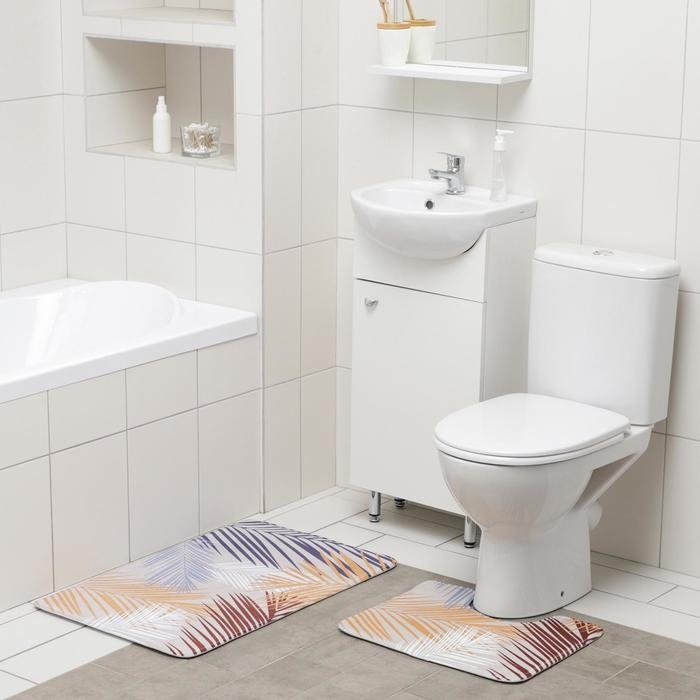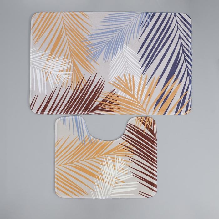 Набор ковриков для ванной и туалета Доляна «Тропический», 2 шт: 50×80, 40×50 см