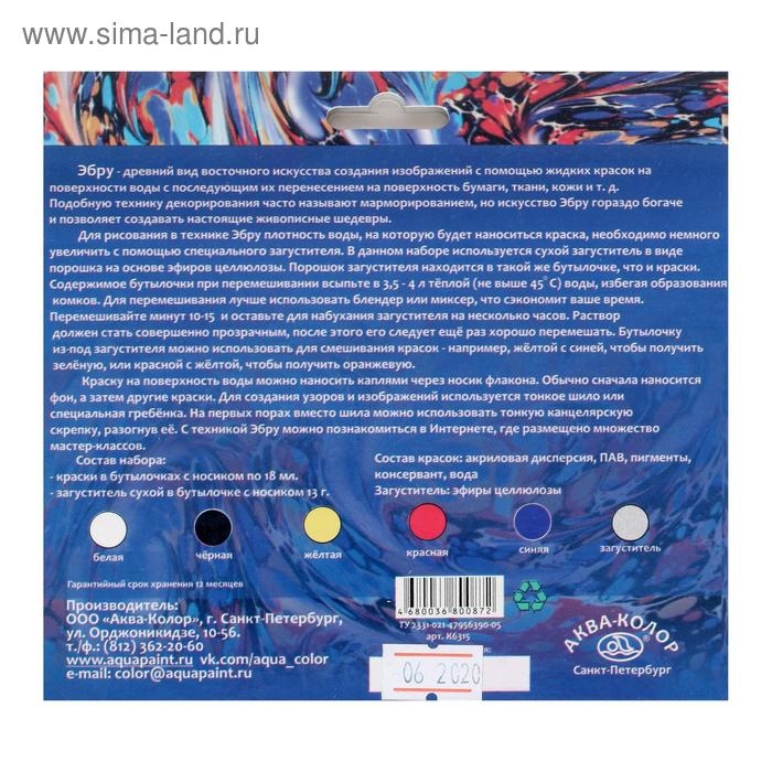 Набор красок для рисования в технике "Эбру", 5 цветов по 18 мл, загуститель, 13 г, "Аква-Колор"