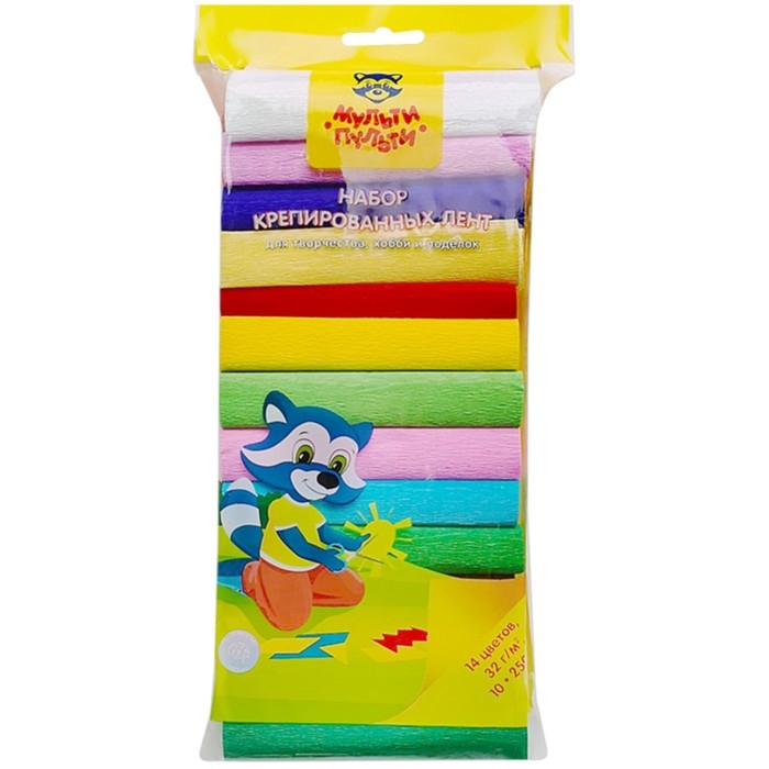 Набор крепированной бумаги 14 цветов Мульти-Пульти, 10 х 250 см, 32г/м2, в рулонах, в пакете