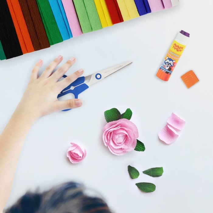 Бумага с мелкоскладчатой (крепированной) поверхностью. Применяется для декорирования открыток и поделок, создания объемных композиций, декора, оформления подарков. Крепированная бумага идеально подходит для детского творчества. Фактура бумаги позволяет создавать объемные яркие поделки, которые вызывает у детей большой интерес к творческому процессу. Разрезая, сгибая, склеивая бумагу, ребенок производит действия, положительно влияющие на моторику рук. Работа с этим материалом помогает развить и творческие качества ребенка: чувство цвета, формы, композиции. Также популярна в таких направлениях как скрапбукинг, декупаж, кардмейкинг, торцевание изготовление топиариев, и искусственных цветов.