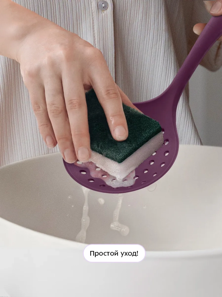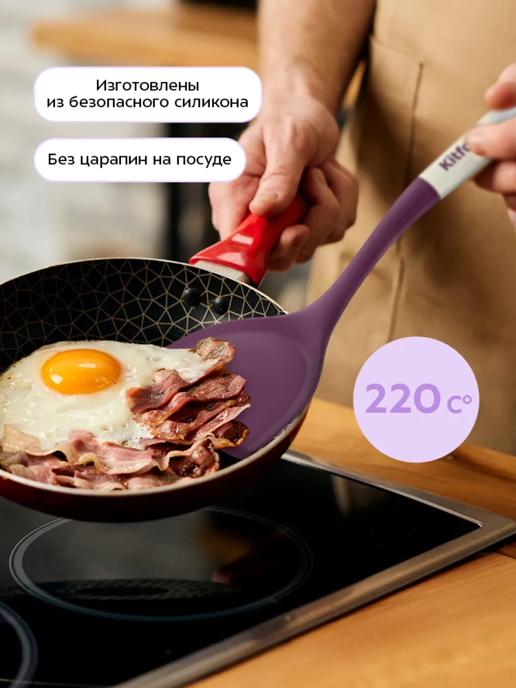 Силикон, из которого выполнены кухонные аксессуары, безопасен для здоровья человека. Силиконовая рабочая поверхность не впитывает запахи и не царапает посуду, поэтому кухонные аксессуары из набора можно использовать с тефлоновой и керамической посудой. Термостойкий силикон аксессуаров выдерживает температуру +220 °С.