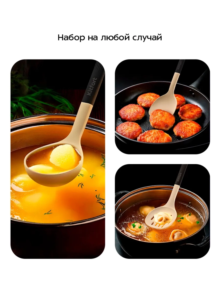 Набор кухонных принадлежностей из силикона — это идеальное решение для вашей кухни. Включает в себя все необходимые приборы для приготовления и сервировки блюд. Силиконовые аксессуары обеспечивают долговечность и удобство в использовании. В набор входят кухонные лопатки, половники, шумовка и другие приборы, которые станут незаменимыми помощниками на вашей кухне.