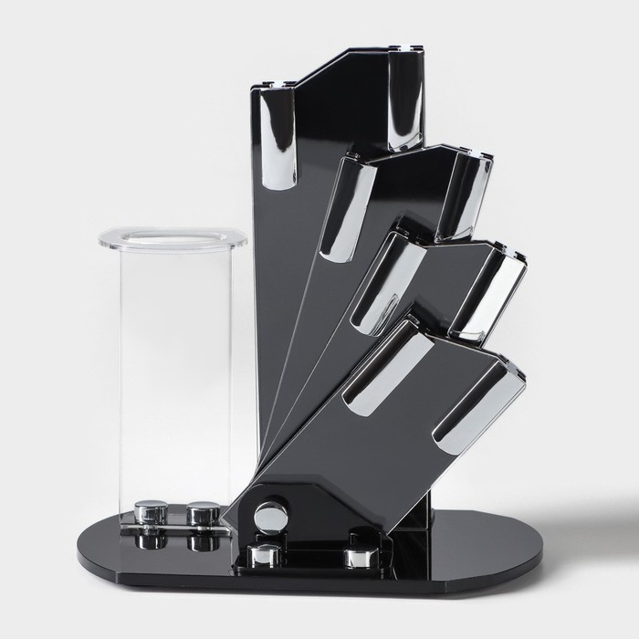 Набор кухонный на подставке Доляна «Симпл», 5 предметов: ножи 7,5 см, 10,5 см, 13 см, 15 см, овощечистка, цвет фиолетовый
