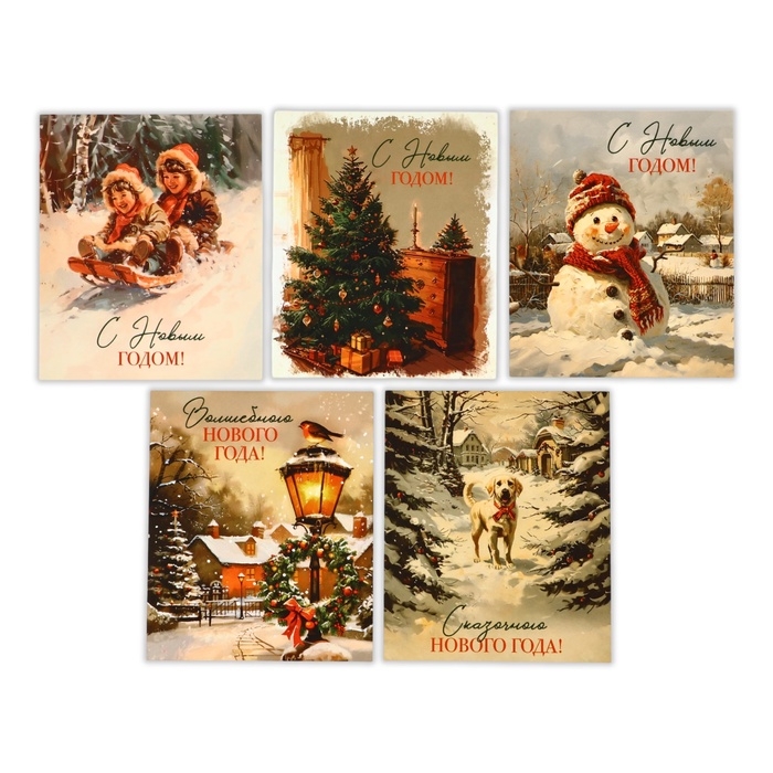 Набор мини-открыток новогодних «С Новым годом!» ретро, 35 штук, 8 x 10 см, Новый год