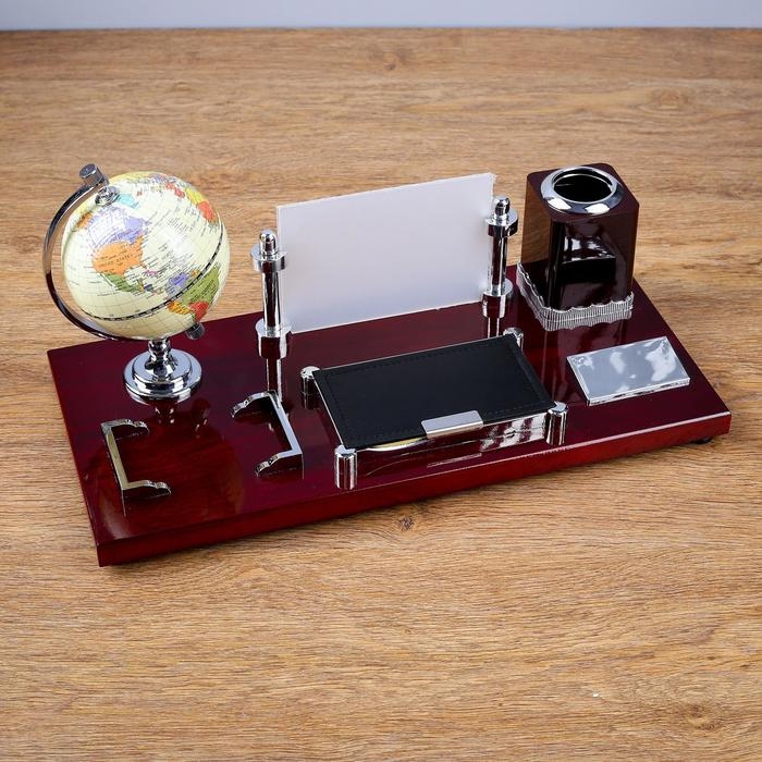 Набор настольный 5в1 (глобус,подст. п/ручки,подст.д/бумаг, фоторамка,скреп) микс