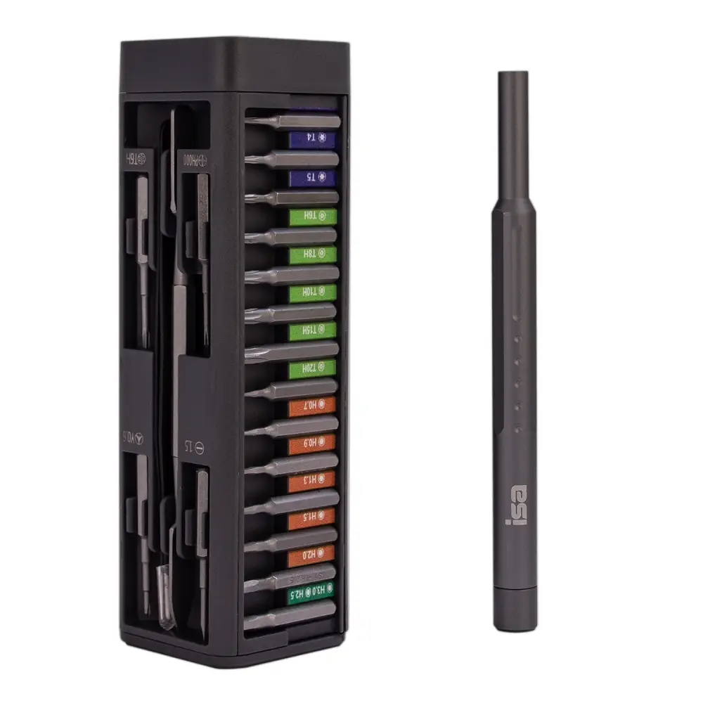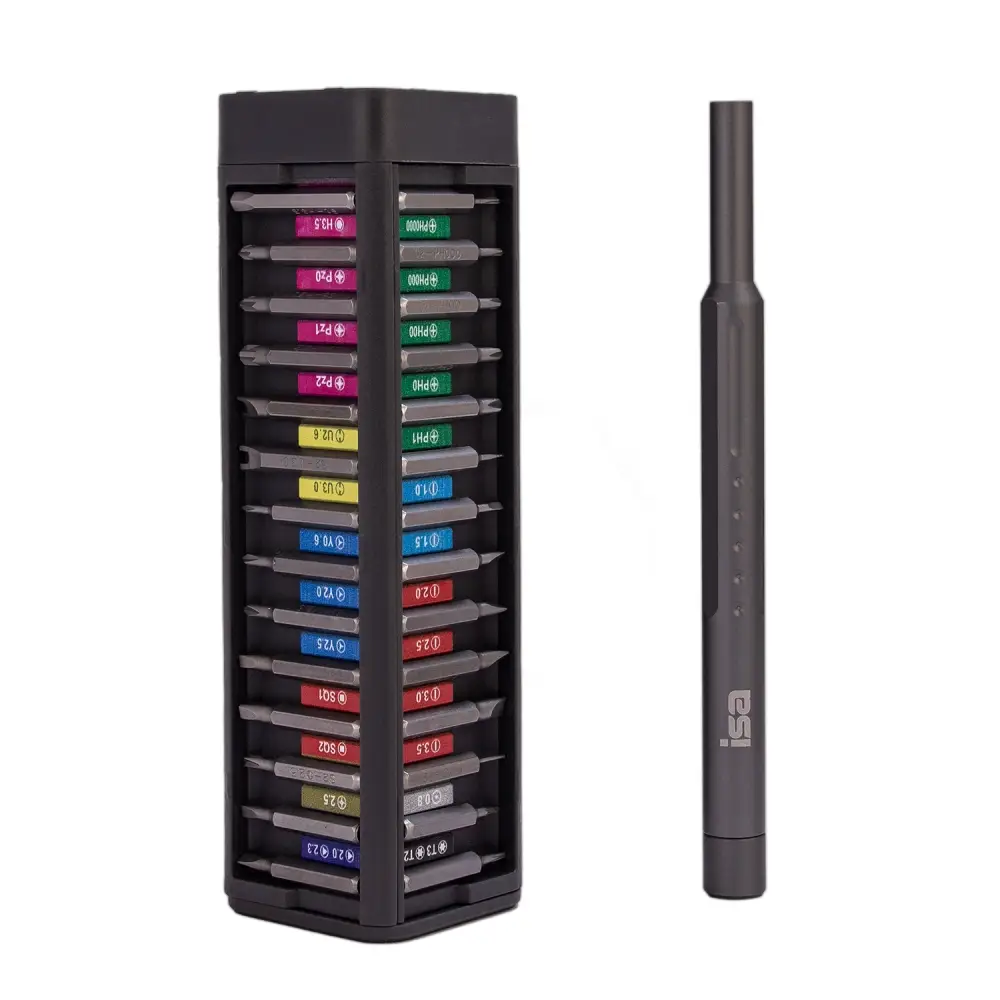 Набор отверток 49 в 1 ISA - это профессиональный комплект для ремонта электроники, включающий 42 сменные биты, 4 удлиненные биты, антистатический пинцет, металлическую лопатку и удобный пенал для хранения. Набор отличается эргономичной магнитной рукояткой с поворотной головкой, выполнен из алюминиевого сплава, идеально подходит для ремонта смартфонов, компьютеров и мелкой электроники. Компактный кейс обеспечивает удобное хранение и транспортировку всех инструментов.