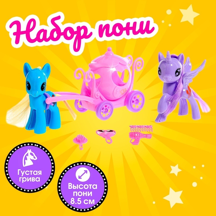 Набор пони «Милашка» 2 шт., с аксессуарами, цвета МИКС