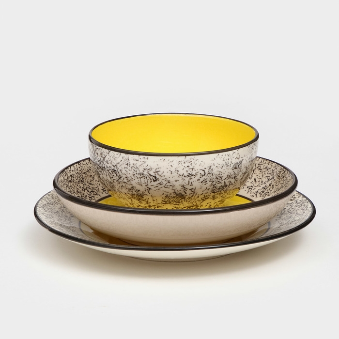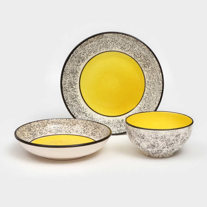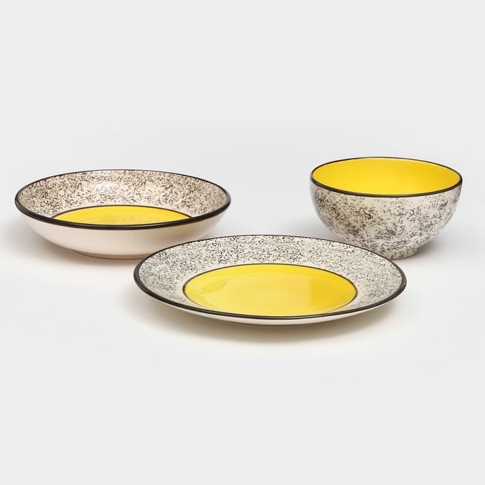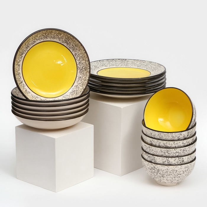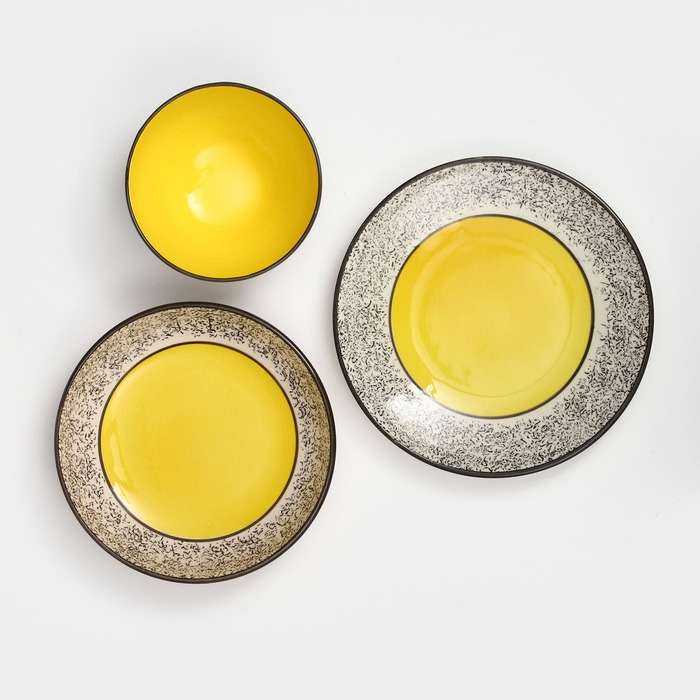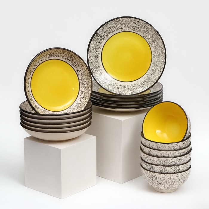 Набор посуды "Восточный", керамика, желтый, 18 предметов: 6 шт-20 см, 6 шт-25 см, 6 шт-15 см 700 мл , 1 сорт, Иран