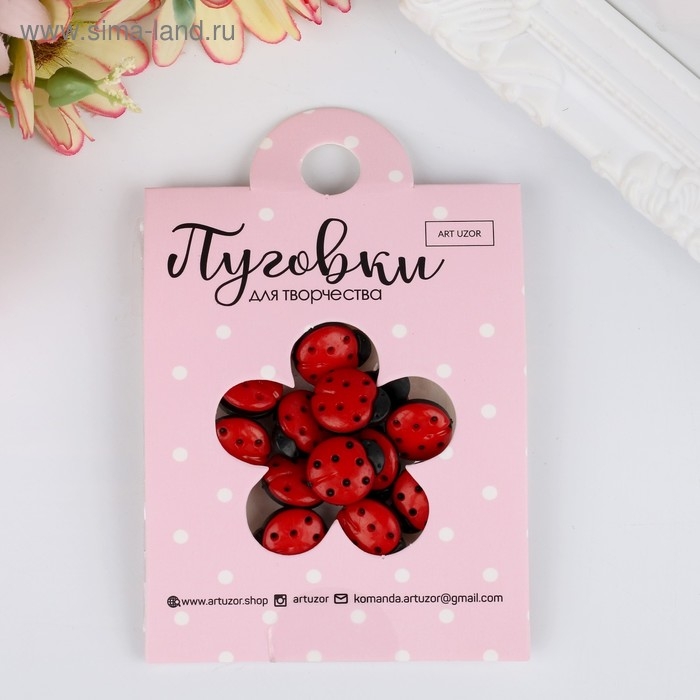 Набор пуговиц пластик "Божья коровка" 1,4х1,1 см н-р 20 шт 11,2х1,5х7 см