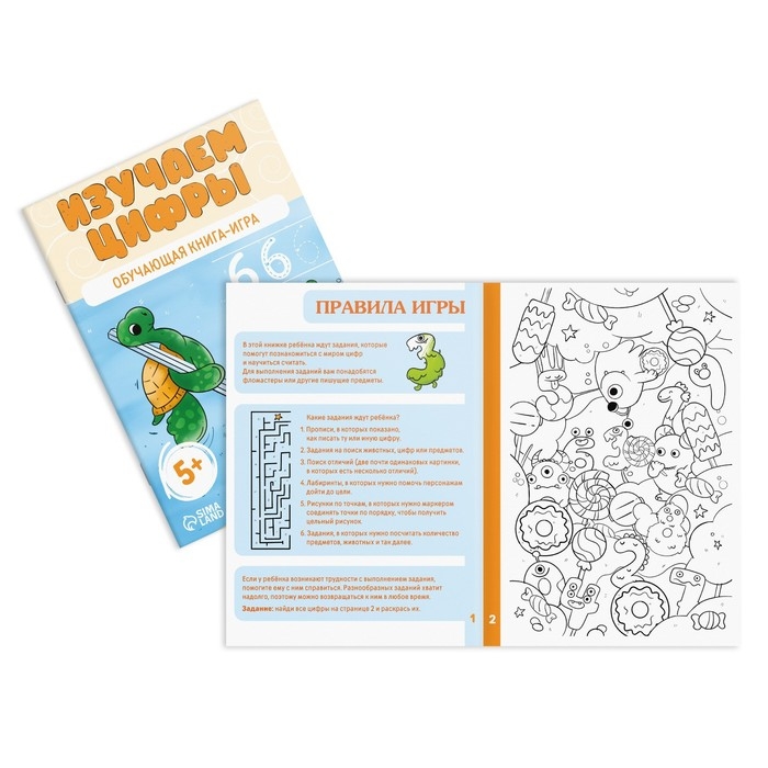 Обучающая книга-игра «Изучаем цифры», 5+В этой книжке вы найдёте увлекательные задания на изучение и закрепление чисел от 1 до 10: прописи цифр, лабиринты, рисунки по точкам и многое другое.