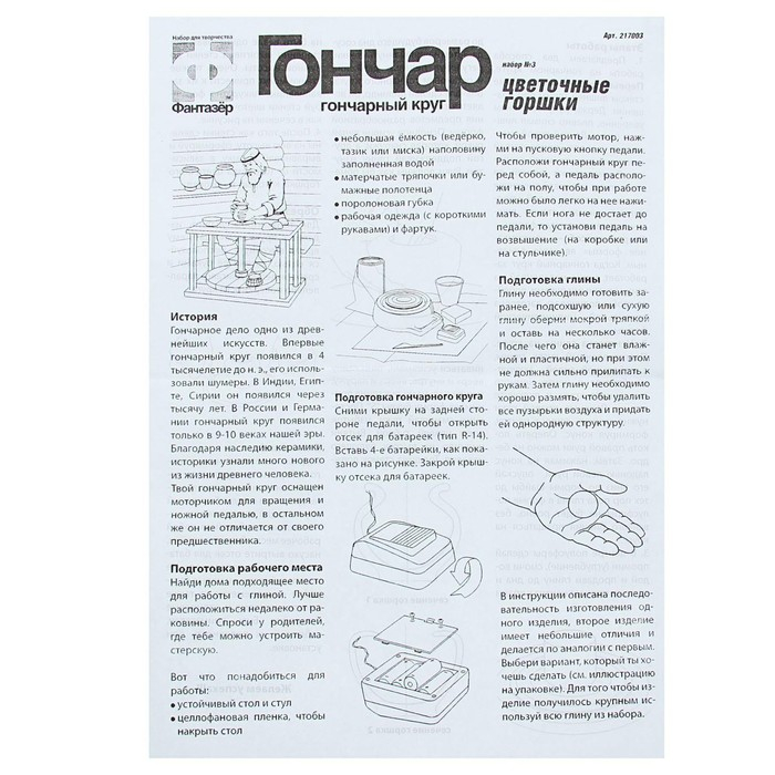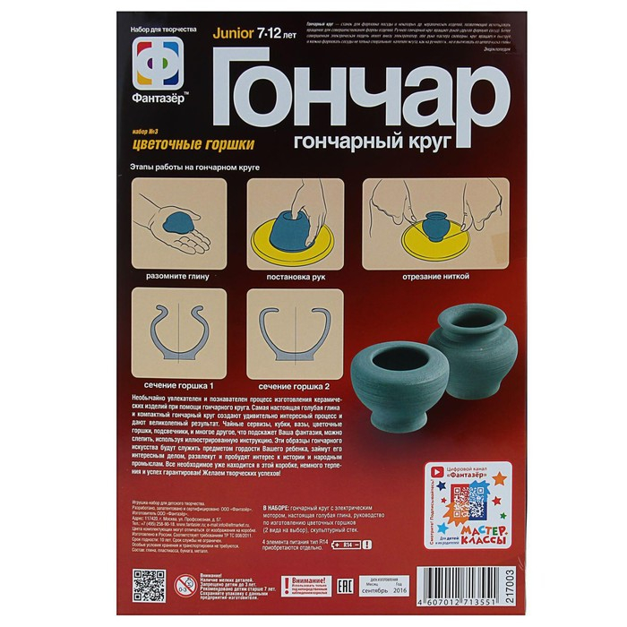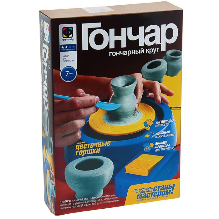 Набор с гончарным кругом «Цветочные горшки» голубая глина 36,5 х 25 х 7,5 см