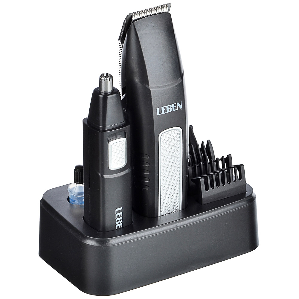 Машинка для корректировки усов и бороды LEBEN с аккумуляторным питанием. Лезвия выполнены из качественных материалов, что обеспечит комфорт во время стрижки. Длину стрижки можно варьировать с помощью смены одной из 4 насадок. К тому же в набор входит приспособление для удаления лишних волос в носу и ушах. Чтобы в любой момент подкорректировать свой внешний вид, достаточно купить триммер от LEBEN.