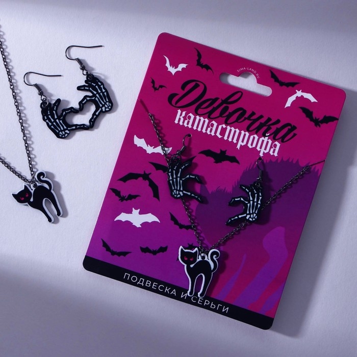 Набор серьги и подвеска на Хэллоуин «Девочка - катастрофа»